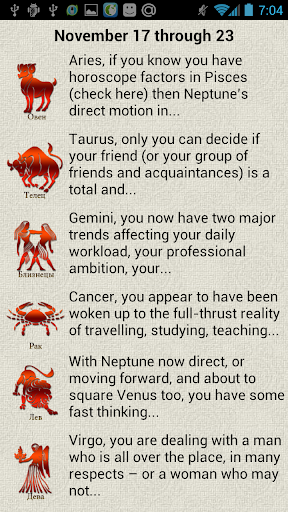 Aries, Taurus, Gemini, Cancer, Leo, Virgo, Libra, Scorpio, Sagittarius, Capricorn, Aquarius, Pisces