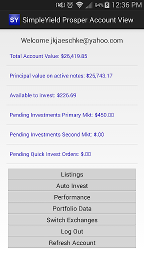 SimpleYield allows you to access either your prosper account via Prosper's API or your LendingClub account thou their API. SimpleYield allows retail peer-to-peer investors to compete right alongside institutions. SimpleYield also provides strategies to simplify peer-to-peer lending for the everyday investor.