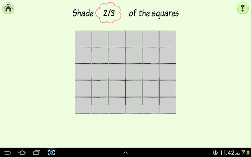 1. Shade Fractions 2: Like in Simply Fractions 1, you are asked to shade the squares, but the number of squares is larger then the denominator. They are arranged so you can easily see the grouping.