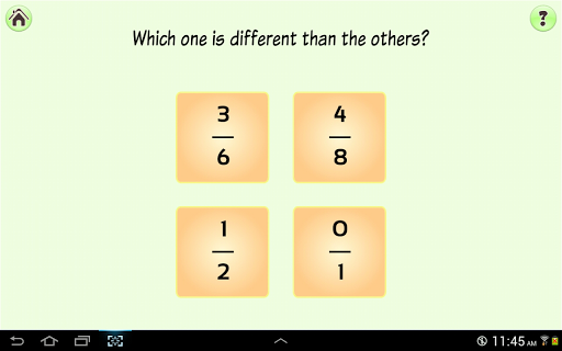 7. Odd one out: You are provided with 4 fractions, you are to eliminate the one that is different than the other three equivalent fractions.