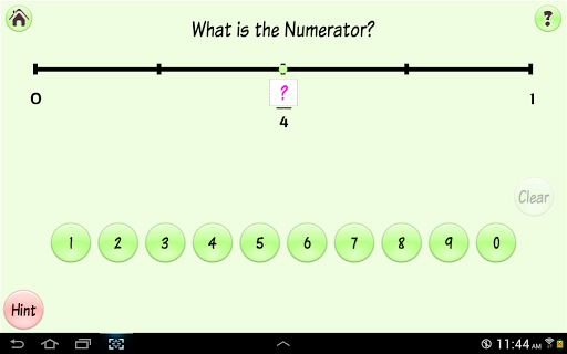 3. Number Line: You have to put in the numerator based on the position on the number line, hints are provided so you will see the fraction on the number line is the same as a fraction of a whole. You will compare the fraction to a half, so you will be prepared to do the harder part of the compare exercises.