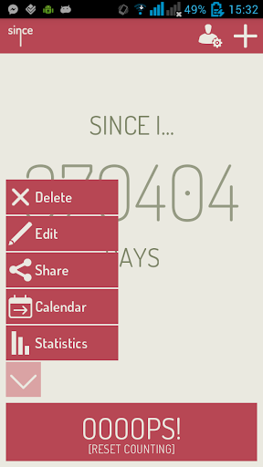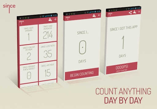 Since is a minimalistic, easy to use app, that lets you quickly create a day counter for any event, track your progress and reset it.