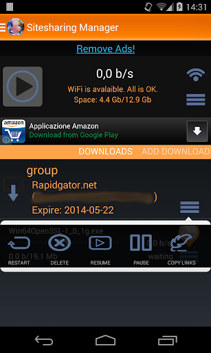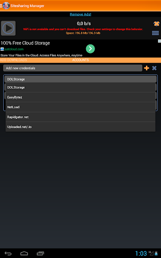 Please note: due to a SSL connection bug on Android 2.2 Rapidshare or HTTPS protocol may not be available