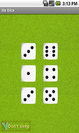 Do you love board games? But often lose the dice? This application will help you! Now, to play board games you do not have to look again your dice, just run the application and select your number of dice. Tap the screen to "throw the dice." If you are annoyed that the phone starts to fall asleep and locked, check "Don't sleep" and the phone will not sleep.
