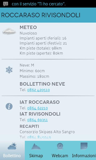 - Possibilità di sms gratuiti per essere costantemente aggiornato sulla situazione neve e impianti della tua località abruzzese preferita