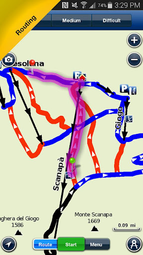 ROUTING – Identify lift and trail names and let the “route” feature help you navigate to a new trail you haven’t tried before with choice of easy, medium or difficult runs and distance.