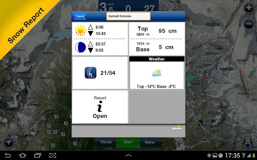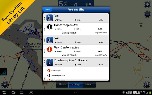 Ski: Europe contains 1616 resorts and over 25000 Km of trails. For a complete list of resorts included in this application: http://www.navionics.com/en/ski-android
