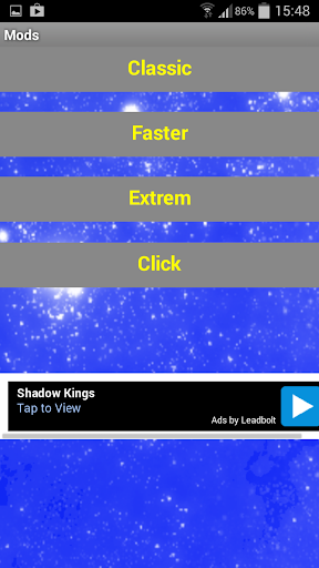 Try to get as many points as you can befor the time is over, by clicking the spaceship as fast as you can.