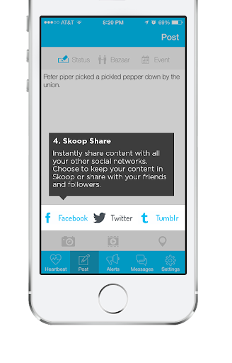 Skoop is a student-only social app specific to your university. Get the latest news from the heartbeat—the pulse of your college’s social network, find out about on- and off-campus events and easily buy, sell, or trade the stuff you need for campus life. From housing to textbooks, concerts to parties, Skoop is the only social network that keeps you updated with what’s happening on campus now and connects you to friends both on and offline.