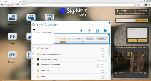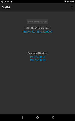 Just Start the SkyNet server and enter the generated IP Address in your favourite browser [Google Chrome Preferred]. And Remotely Manage your Phone from the browser itself, No 3rd Party servers needed. No hassle.