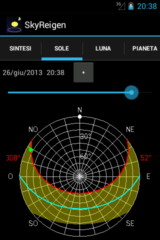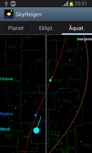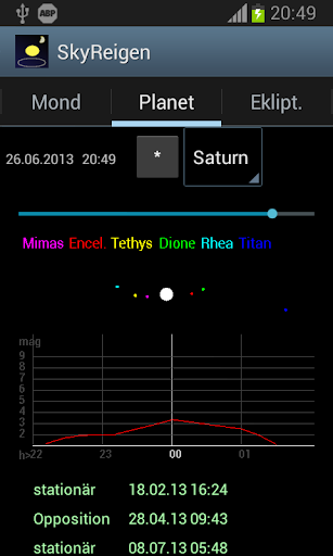 Ephemeris App for Sun, Moon and Planets. Shows rise, set, position and more data about the major solar system objects. Interesting events such as seasons, moon phases, eclipses and planet phenomena are also calculated and displayed.