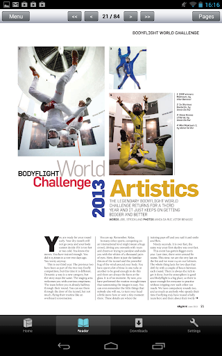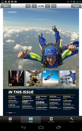 Flip your device and read the magazine in either orientation or tap the page selector to choose a specific page to fast-navigate. You can also download and save individual pages or full editions to enjoy offline and when you are on the go. The Skydive The Mag app provides access to a large number of back editions of Skydive The Mag.