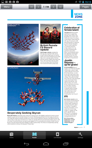 Your Skydive The Mag app features search functionality to find key-words relating to recent content, a zoom function to enable clearer reading of selected articles and social networking integration to keep your friends up to date with all the latest shared news from the magazine.