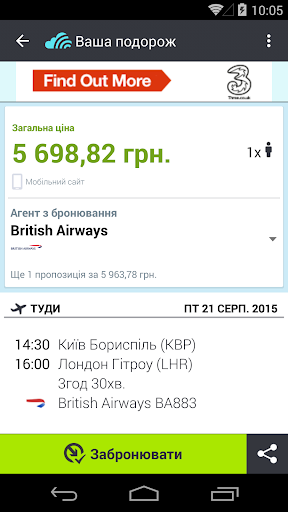 Потрібно в будь-який час знайти дешеві авіаквитки? Skyscanner дасть змогу зекономити гроші й час. За допомогою нашої потужної системи можна виконати пошук серед мільйонів рейсів від сотень авіакомпаній по всьому світу — як бюджетних, так і регулярних — і знайти найвигідніші квитки за найнижчу ціну. Знайшовши потрібні рейси, ви перейдете безпосередньо на веб-сайт авіакомпанії або туристичної агенції, де отримаєте найкращу пропозицію. Весь процес займе кілька дотиків.