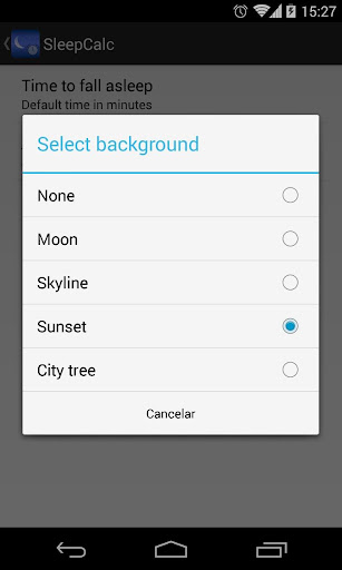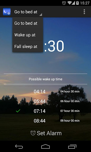 The app supports calculating when to wake up, when to go to sleep, and when to wake up if you sleep now. You can then set up an alarm to wake up at the right time. You can even input how long it normally takes you to fall asleep, and setting the minutes you need before falling asleep.