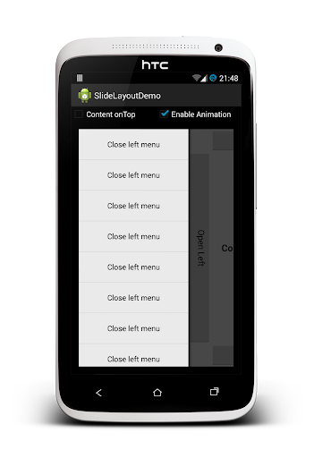 SlideLayout is an Open Source Android library that allows developers to easily add SlideMenu feature. It supports 4 menu at each side of content view concurrently.