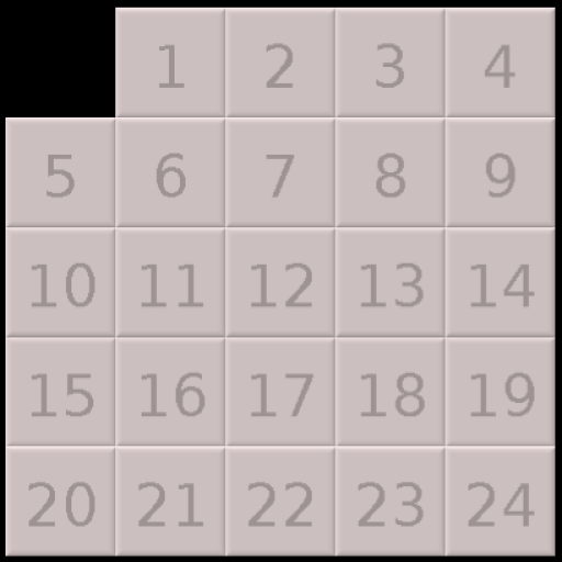 Slide the 5x5 set of tiles to solve 1 of 3 puzzles: sorting numbers, unscrambling images, and creating 5 random words generated from a dictionary of 2500 words.