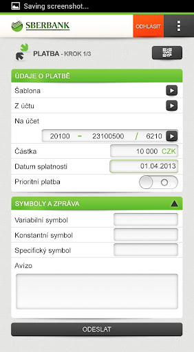 - zobrazení plateb zadaných pomocí aplikace Smart Banking
