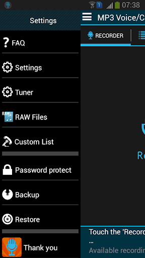 ★Alternate launching option: Open MP3 Voice Recorder icon and touch the record icon of the RECORDER tab