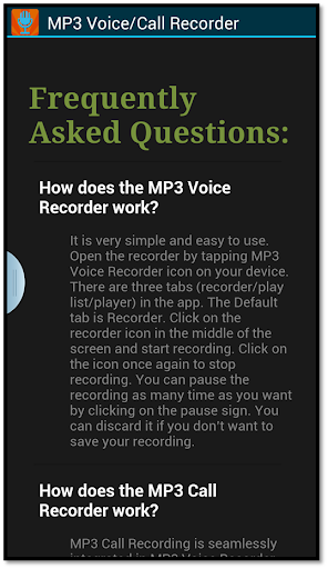 “Smart Voice/Call Recorder MP3” App is designed to provide you the easiest and most simple audio, voice and call recorder experience. Use this App to record your meetings, phone calls, conferences, interviews, classes, lectures or whatever else you might need directly onto MP3 format for as long as you want. This app can start/stop recordings in the background by pressing ‘volume up’ and then ‘volume down’ of your device within 3 sec. It essentially fulfills all user requirements and much more, guaranteeing a fun, effortless and efficient functional performance. You will never need another voice recording app again.
