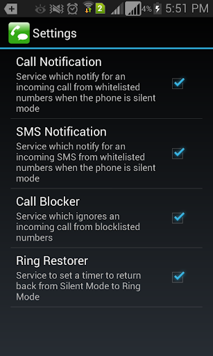 - If you get any calls or SMS from any of the numbers added in the whitelist your phone will ALWAYS RING.