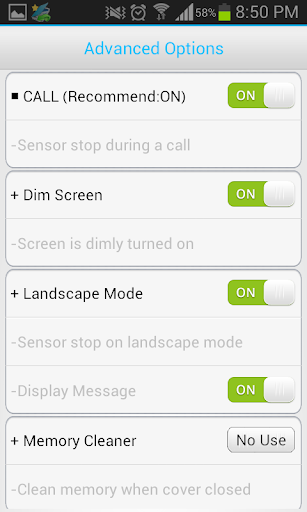 - When Landscape Mode( like camera, game) is running,Sensor pause (Only Pro Version)