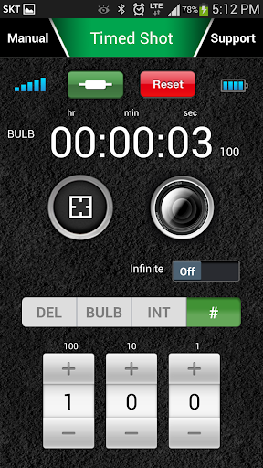 Timed Shot mode converts your smart phone to a full-featured intervalometer. Use this mode to perform advanced photography techniques like time-lapses.