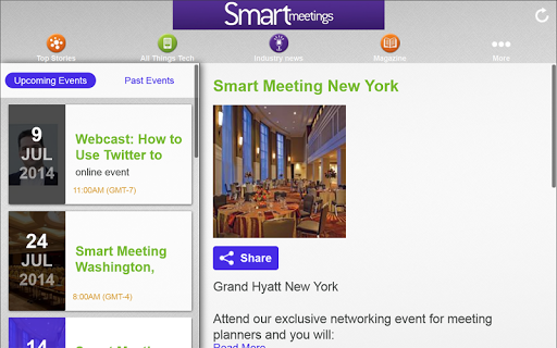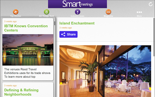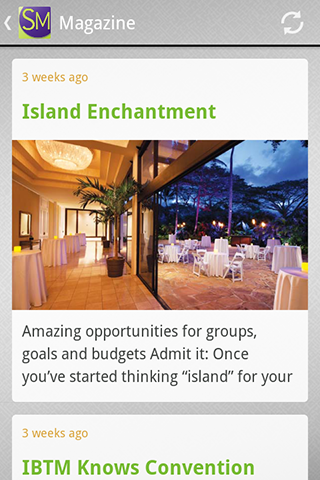 Smart Meetings magazine covers the latest meetings industry news, trends, corporate event planning, emerging technology, and the best venues and destinations. Our app provides event professionals with free access to everything Smart Meetings has to offer--not just articles from our monthly magazine but daily news updates (including a section devoted specifically to meetings technology), blog and social media posts, information on our Smart Meetings events and webcasts, and photos and videos featuring inspiring ideas and venues.