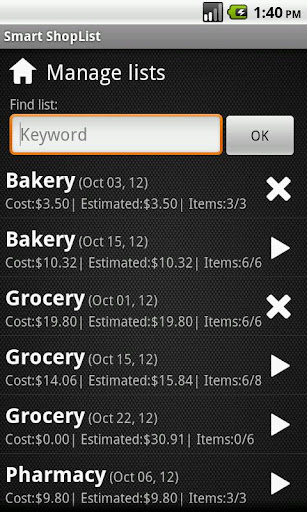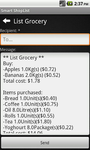 Throughout your purchases and the register of prices Smartshop List will enable you to know in the future the estimated cost of your shopping list, if you are buying a product above or below of the medium price and in the end of shopping you will know how much you will pay.