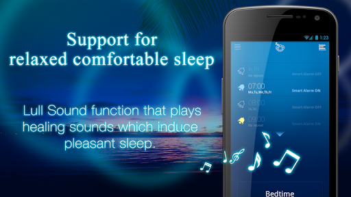 Smart Alarm function monitors body movements using accelerometer in your smartphone and activates the alarm when you're in light sleep. Note that when Smart Alarm is turned on, alarm will go off prior to the alarm time.