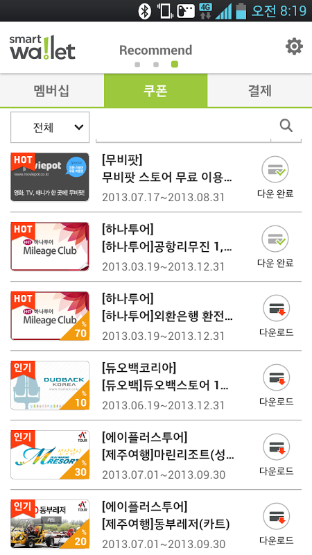 LG U +,SKT,KT为载体,无论厚厚的钱包,而不是简单地通过移动应用成员通过各种折扣和信息检索和信用卡/借记卡作为一种便捷的支付,直到所有可用/券/邮票/事件智能电子钱包。智能钱包(智能Wallet_手机钱包)]