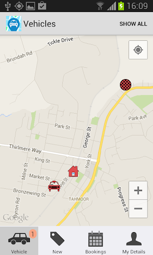 Once the driver accepts the booking, the vehicle is displayed on the map.
