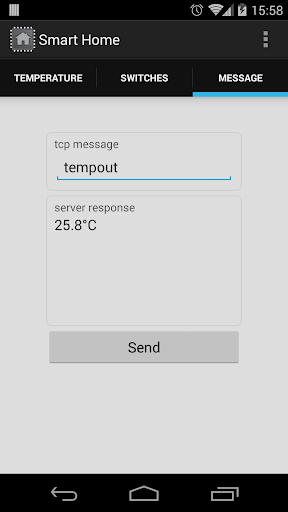 The SmartHome application enables remote monitoring of temperature indoor and outdoor, control function on/off lights and home appliances. Additionally allows to send text commands to server using TCP/IP communication.
