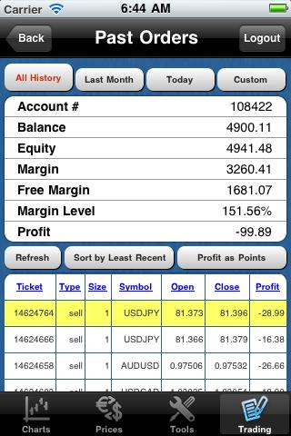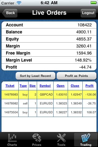- View Real Time Profit/Loss of Live Trades