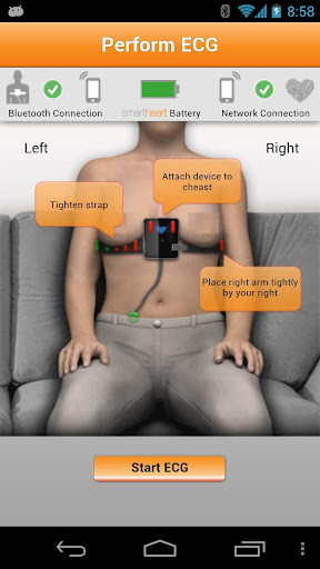 The Smartheart® application enables a user to perform a full 12-lead ECG and rhythm strip in real time to enable review by the medical professional