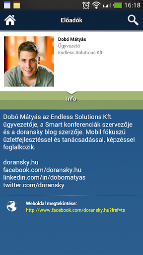 A SmartMobil alkalmazással elérhetővé válik a SmartMobil 2014 konferencia teljes programja és előadói listája. Az SM '14 Magyarország legnagyobb mobil technológiával és startupokkal foglalkozó konferenciasorozata, amely közel 1000 látogatóval, 100 előadóval, a legnagyobb hazai vállalatok részvételével minden évben elhozza a legfrissebb technológiai trendeket, naprakész nemzetközi tudást ad a mobil piac helyzetéről és kapcsolatépítésre fókuszáló felépítésével támogatja az új üzleti lehetőségek kiaknázását.