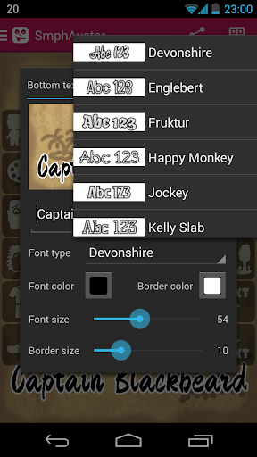 You can load the avatars made by others via scanning the avatar's QR code directly from the app . You can add your stuff to the avatar then and change the upper or the bottom text.