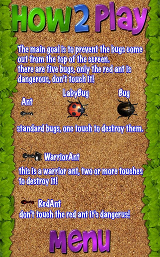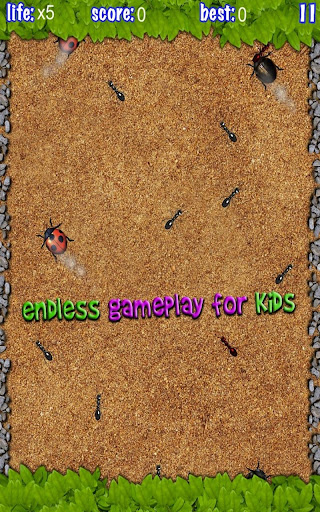 Smash those bugs with your finger in this awesome game! smash the ants, smash the bugs but don't touch the red Ant it's very dangerous! You have five lives to smash the more bugs you can and after sign your personal record in the local leaderboard. The graphics is really nice and the animations are very cool, the gameplay is amazing there is a Kids mode for your child, they will love it. So get it now it's free and smash all bugs! Have fun with this great game.