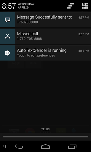 -Posts notifications to the status bar to let you know at what time it sent automatic messages, and who the messages were sent to. Indicates whether the messages were sent successfully or not.