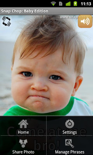 Step 3: Snap Chop: Baby Edition selects a random phrase from its large collection of baby related funny and places it over your photo!