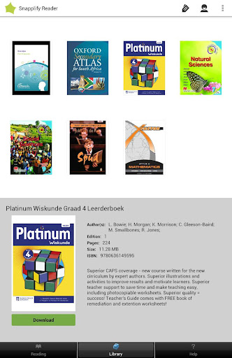 The Snapplify Reader is a beautiful, easy-to-use application that allows you to read eBooks on your Android smartphone or tablet, whenever and wherever you please.