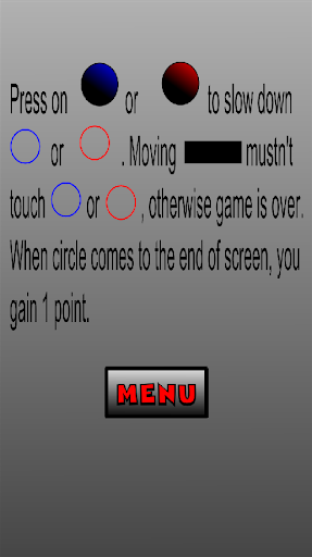 - Press and hold red or blue circles on bottom of the screen to stop circles from falling down
