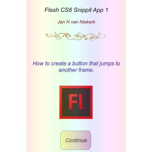 This app is develop to demonstrate the procedure, how to create a button, when pressed, would jump to another frame in the movie, in Flash CS6.