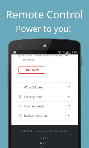 Features include Evil faces, Snoop mode, Remote account removal, Remote locking, Remote factory reset, Remote memory wipe and so on.