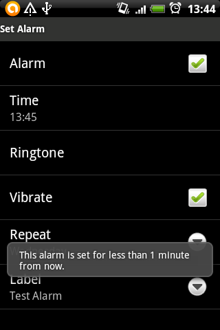When ever the alarm starts making sound, user will be shown with alert box containing Snooze button, once the user clicks the Snooze button, it turns back to Dismiss button. If the user does not click the Dismiss button with in 10 seconds, application will get into Snooze mode and alert box will close. If the user clicks the Dismiss button, then the alarm will stop.