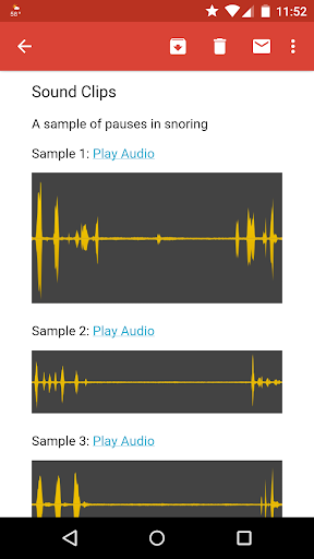 Snoring Analyzer records your or your bed partner's snoring sounds during the night and to see if the snoring is just annoying or if it's sleep apnea.