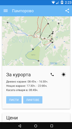 Интерактивна мултитъч карта на курортите,актуално състояние на писти и лифтове,цени и условия на лифт карти, телефони