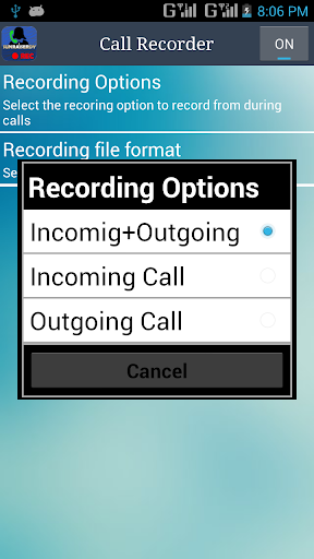 If we choose only incoming call record an allowed snsrdy call recorder.