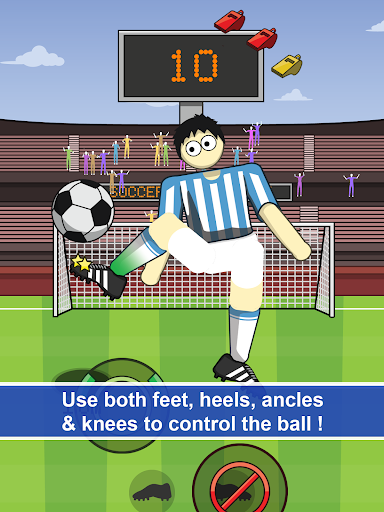 Control one leg at a time, as you prefect your aim and timing to get the ball to bounce where you want and how high you want. Once you master controlling your legs, then get ready to headbutt the ball with your head and send it flying through the sky.