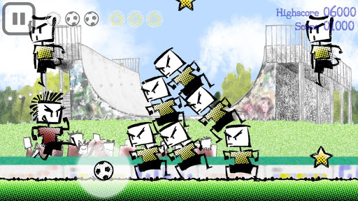Did we say “sly”? We should rather say: be slyer than anyone who ever walked the pitch. It ain’t enough to pass one opponent and shoot straight at the goal and that’s it – nah, here you fling the ball past three bouncing opponents, topple a human pyramid, knock several square heads flat, and only then score the goal. And that was still an easy shot!